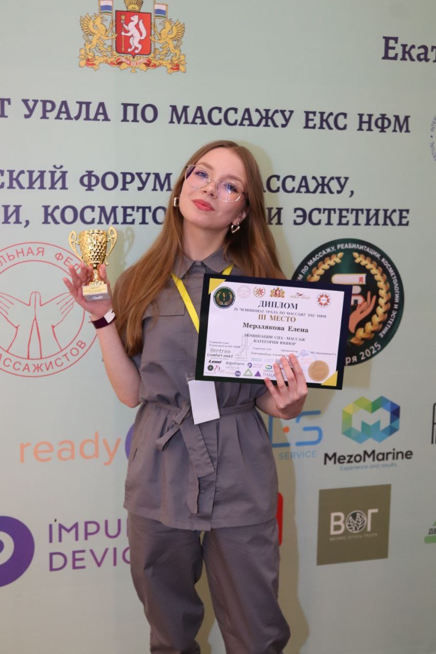 С 8 по 9 ноября 2025 года в Екатеринбурге прошел IX Чемпионат Урала по массажу. В номинации "СПА-массаж" в категории "Юниор" приняли участие студенты Екатеринбургского техникума отраслевых технологий и сервиса по направлению "Эстетическая косметология" группа 302 ТИКЭК.