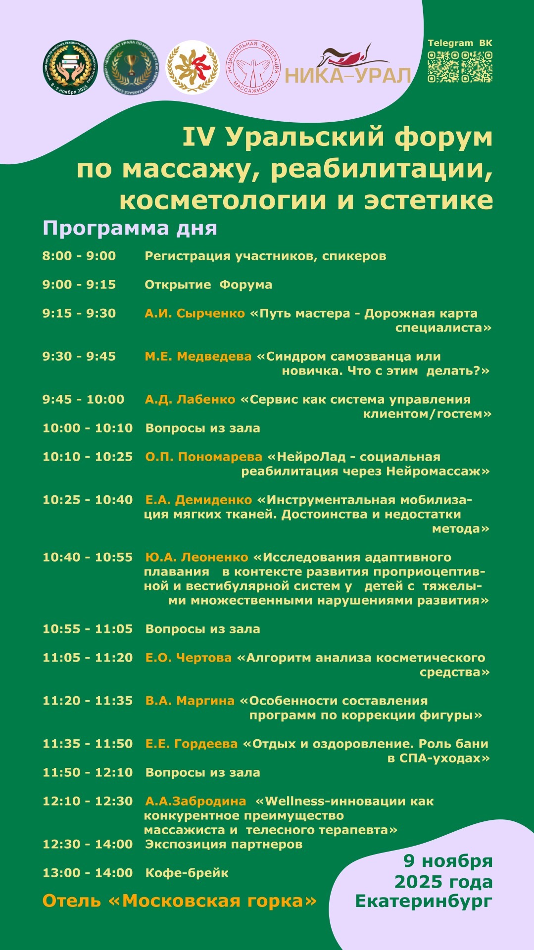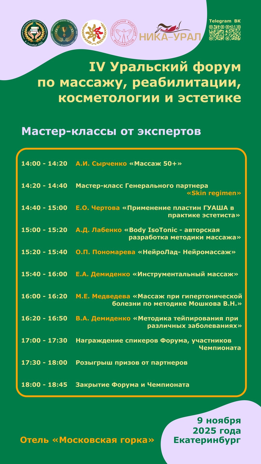 В нашем расписании вы найдете информацию о времени проведения мероприятий форума, а также мастер-классов
