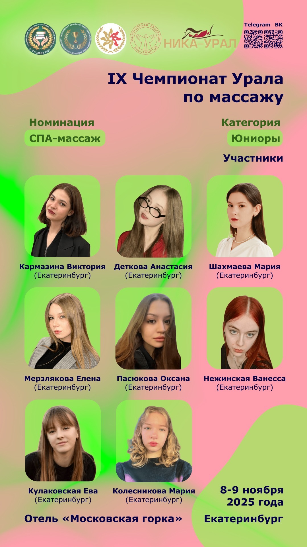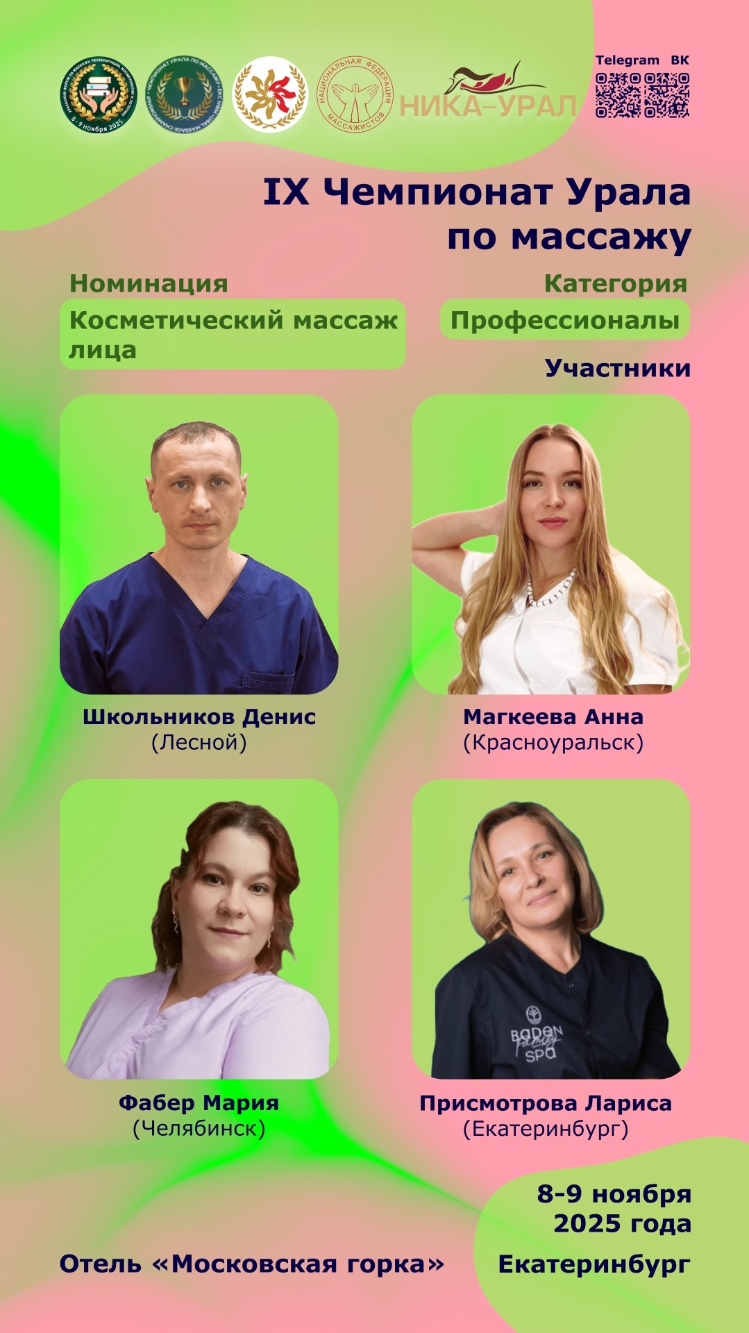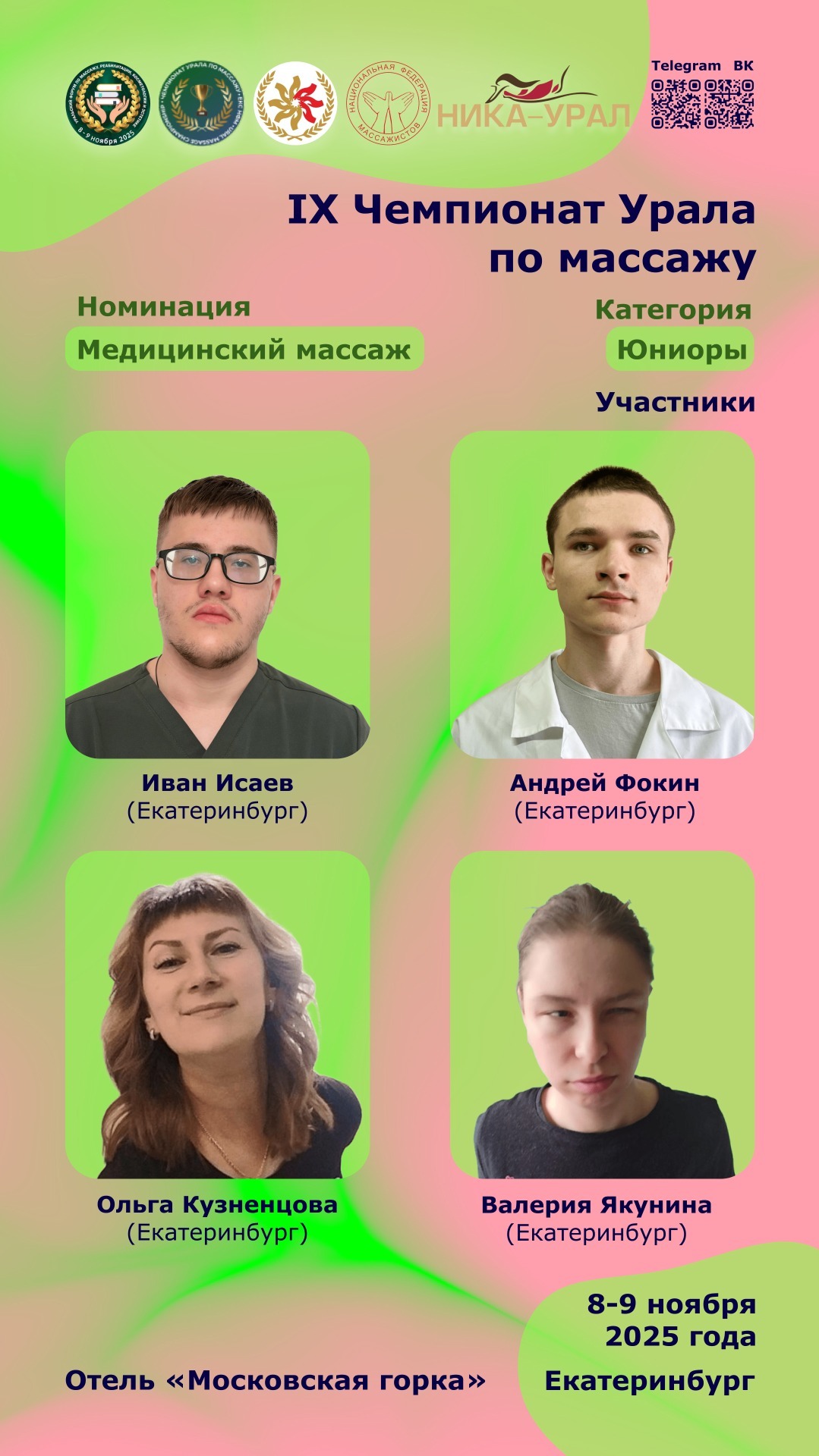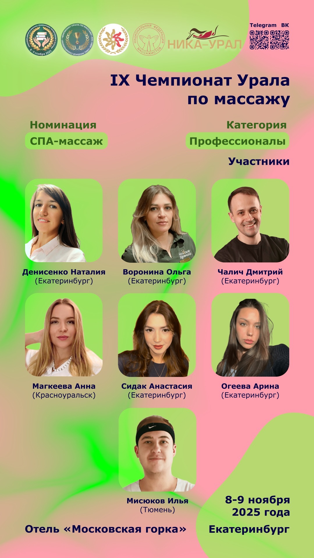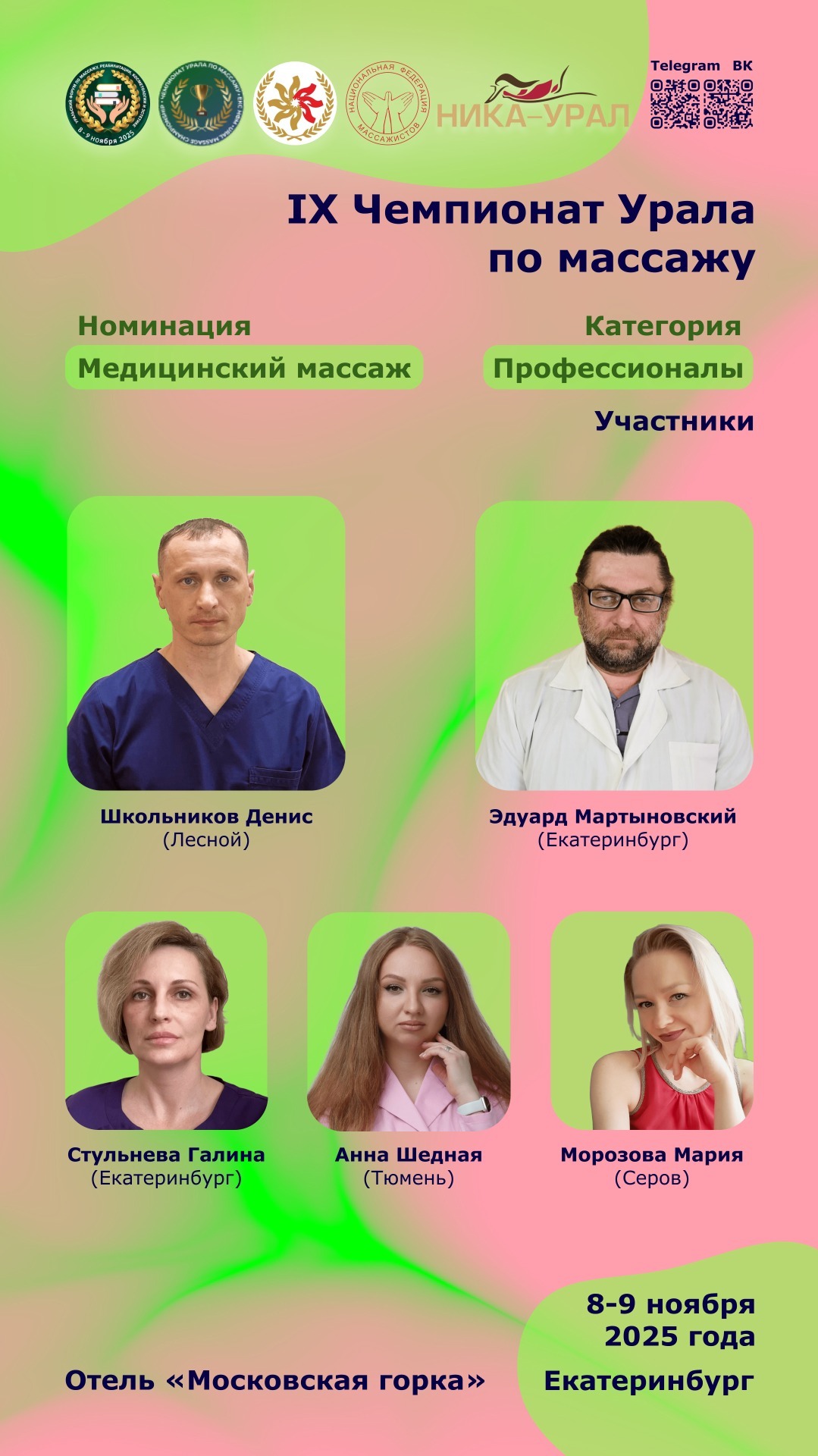 8-9 ноября 2025 года в Екатеринбурге будет проходить IX Чемпионат Урала по массажу. Давайте знакомиться с участниками